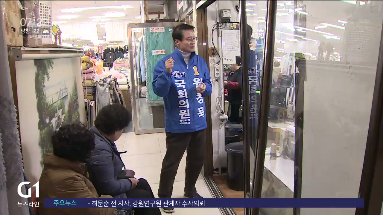 이번 총선에선 원주갑 '수성'이냐, '탈환'이냐를 놓고 두 후보는 물론 여야가 총력전을 펴고 있습니다.