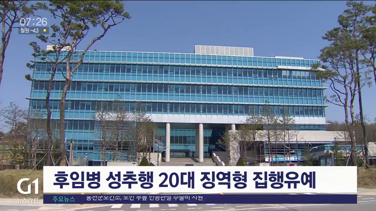 춘천지법 원주지원 형사 1부는 군인 등 강제추행 혐의로 불구속기소된 22살 A씨에게 징역 6개월에 집행유예 1년을 선고했습니다.