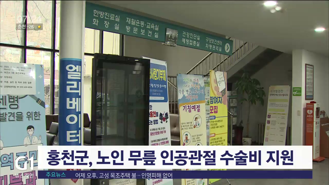 홍천군보건소가 저소득층 노인을 대상으로 무릎 인공관절 수술비를 지원합니다.