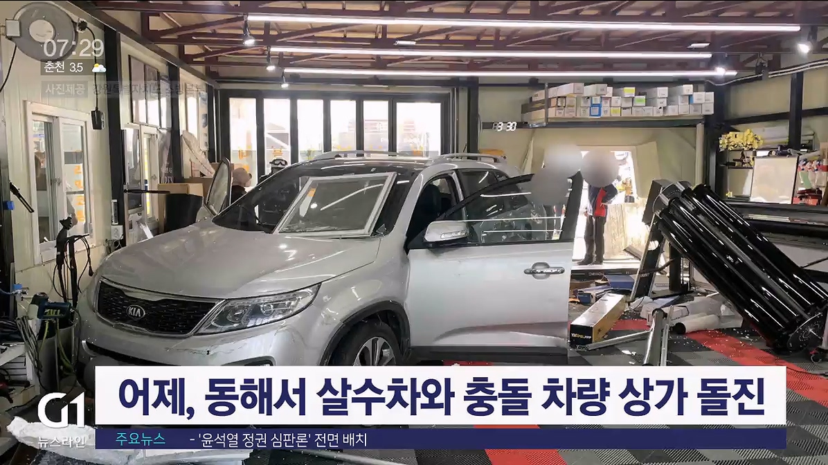 어제, 동해서 살수차와 충돌 차량 상가 돌진