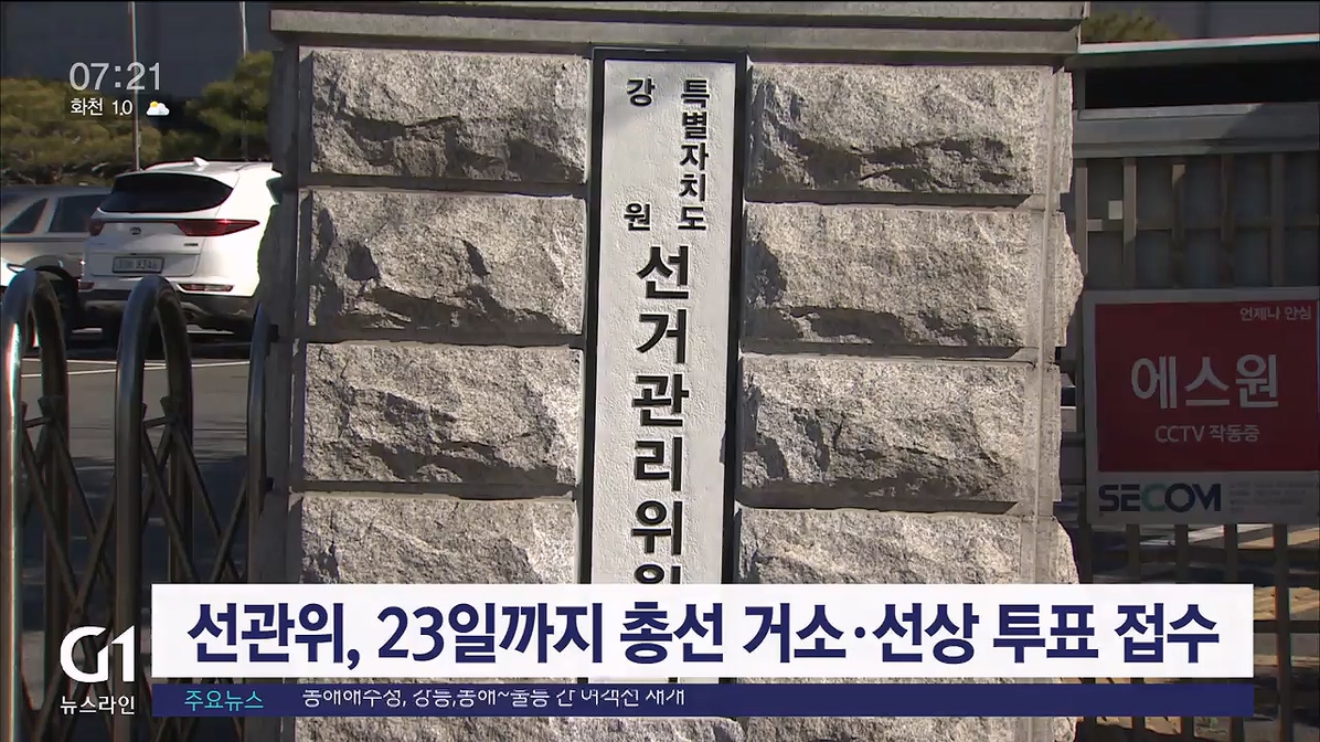 강원자치도 선거관리위원회가 다음달 치러지는 국회의원 선거와 관련해 거소 투표와 선상투표 신고 접수를 받습니다.