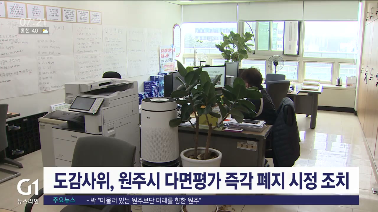 유예기간 없이 다면평가 제도를 폐지한 원주시의 행정에 대해 강원자치도 감사위원회가 시정 조치한 것으로 확인됐습니다.