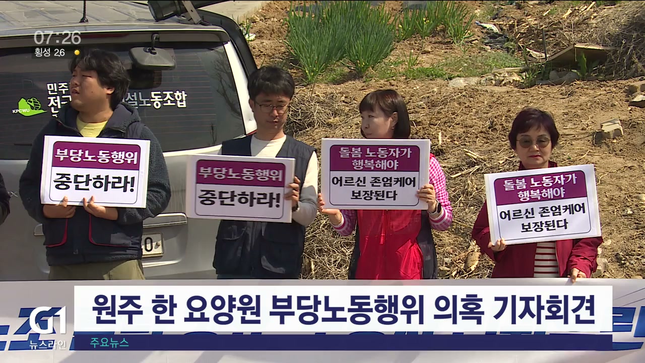 민주노총서비스연맹 전국돌봄서비스노동조합은 어제(2일) 원주의 한 요양원 앞에서 기자회견을 열고,