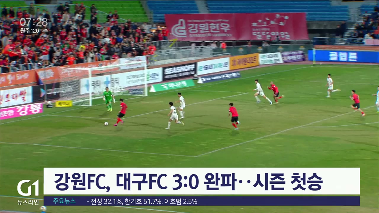강원FC, 대구FC 3:0 완파..시즌 첫승