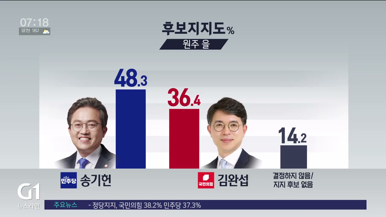 원주 을 18.1% / ±4.4%p