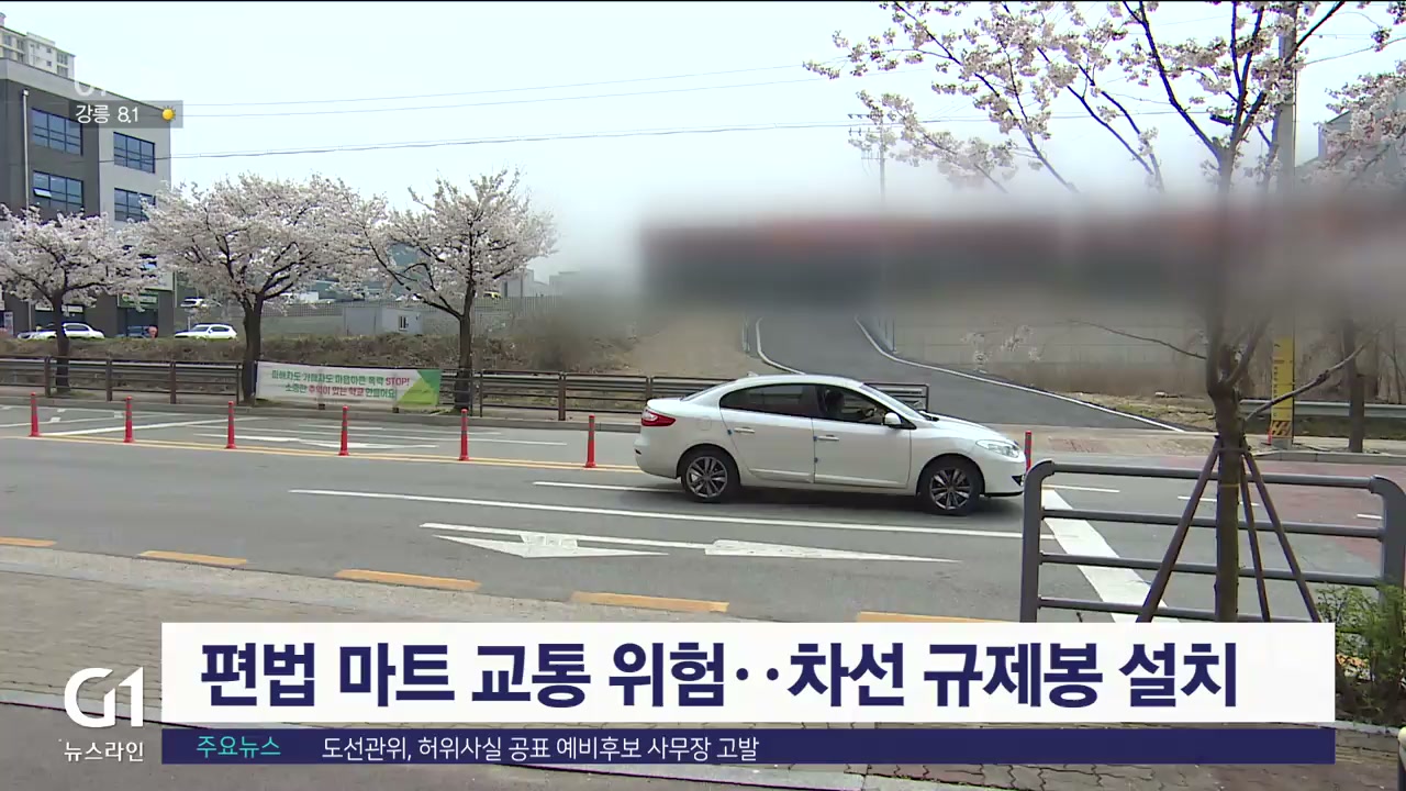<속보> 편법 마트 교통 위험..차선 규제봉 설치