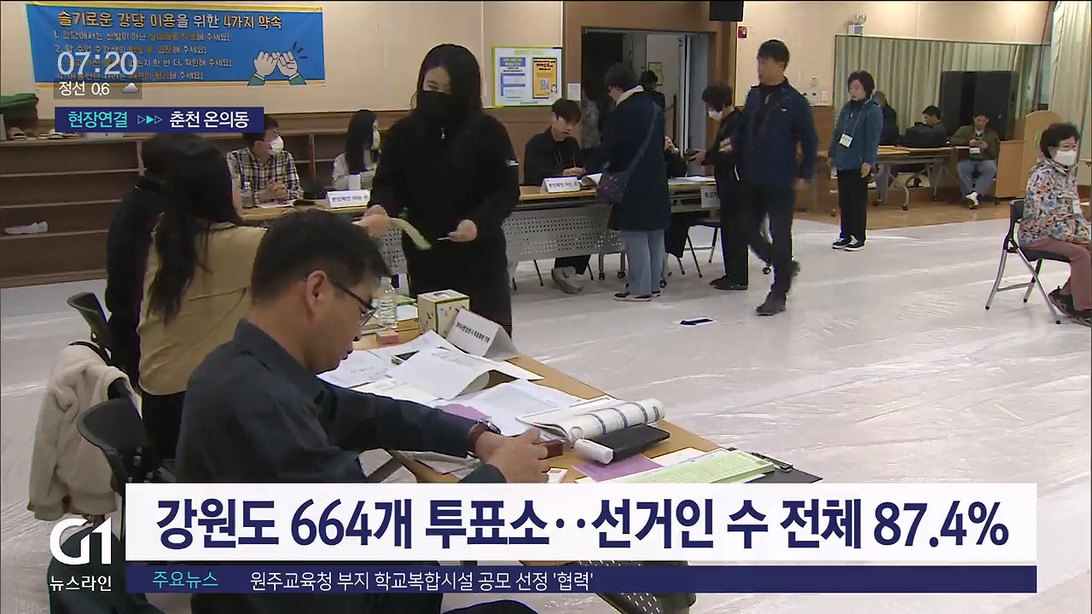 강원도에서는 664개 투표소에서 오전 6시부터 오후 6시까지 투표가 진행됩니다.