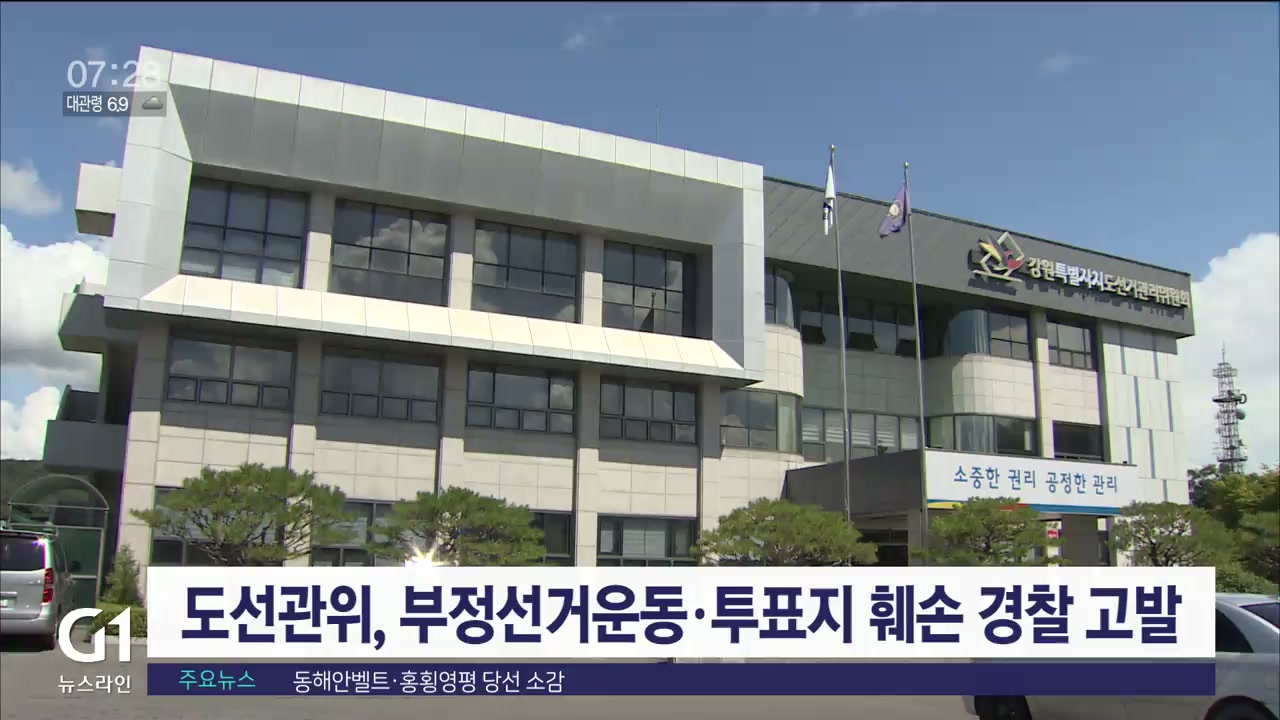 강원자치도 선거관리위원회가 부정선거운동을 하고 투표지를 훼손하는 등 공직선거법 위반 혐의 3건을 경찰에 고발했다고 밝혔습니다.