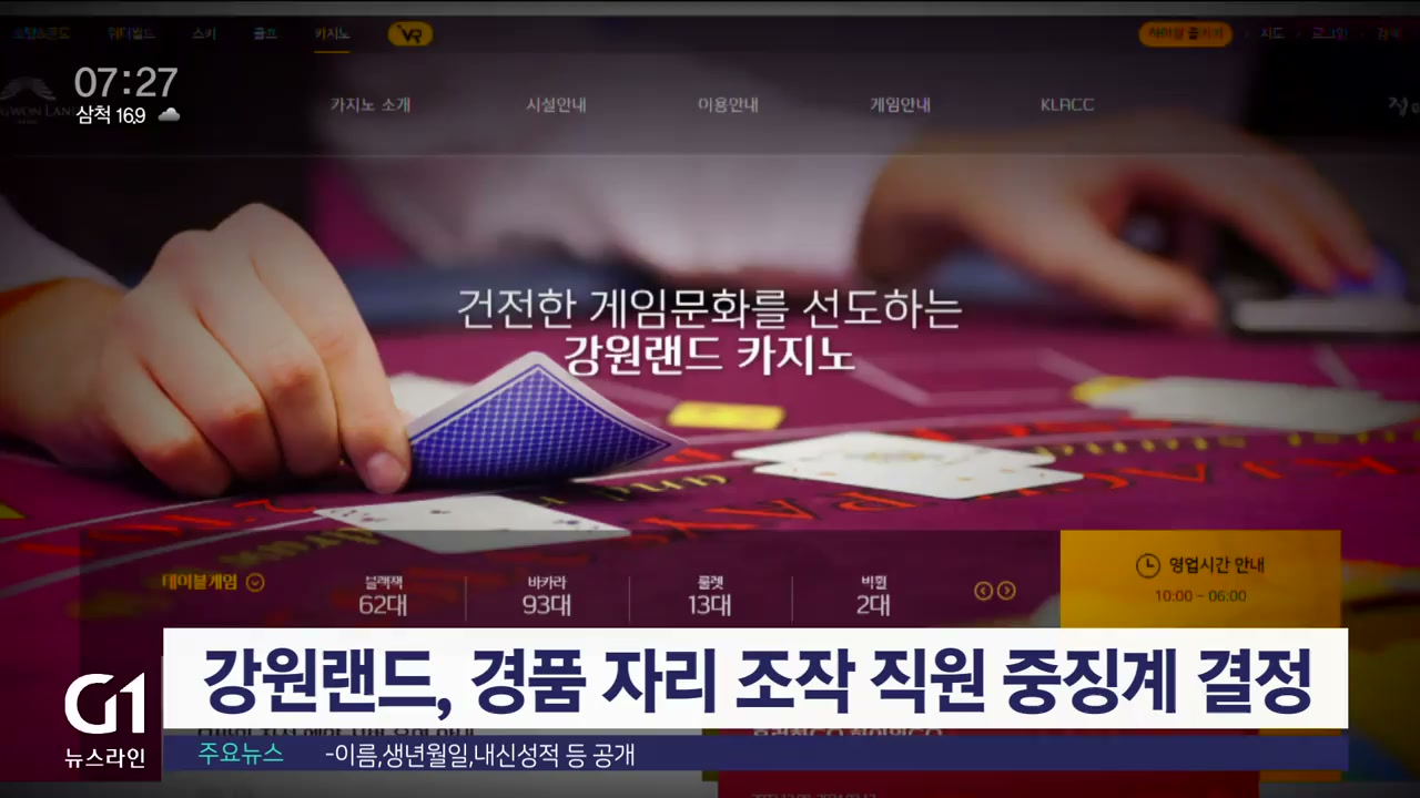 지난 1월 G1뉴스가 단독 보도한 강원랜드 카지노 자리 조작 의혹과 관련해, 강원랜드 측이 내부 중징계를 결정했습니다.