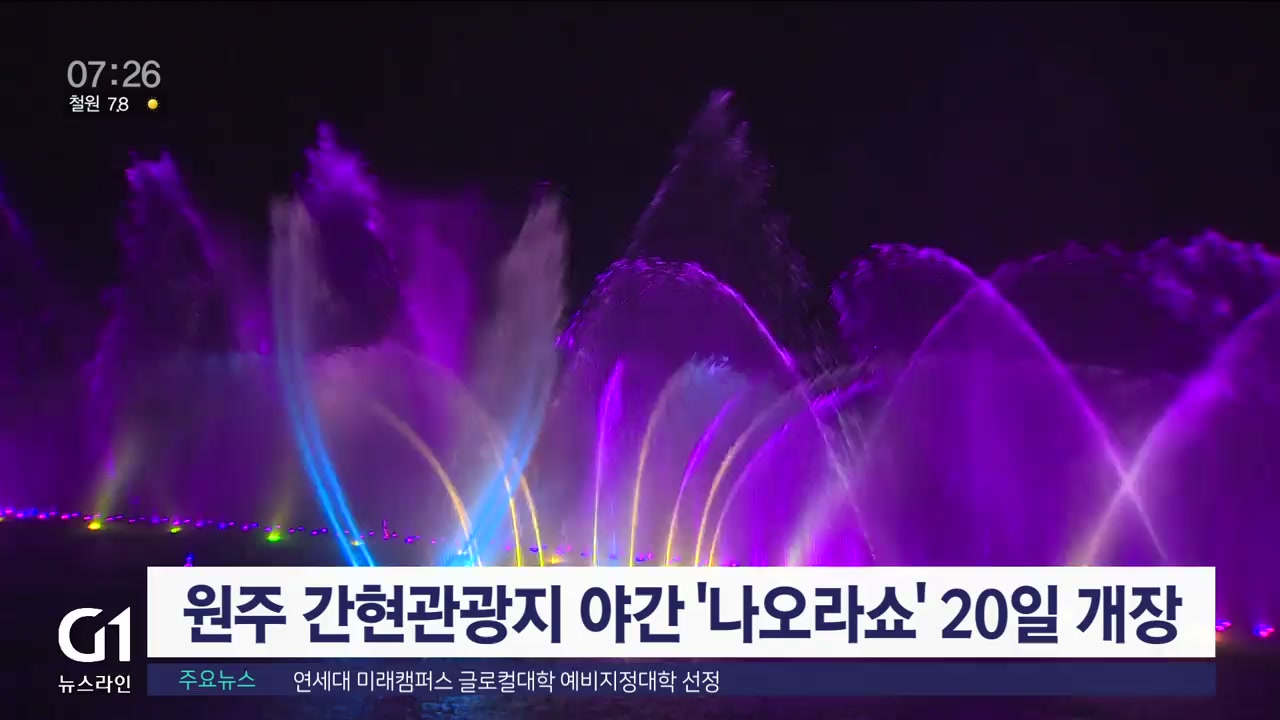 원주 간현관광지의 야간 볼거리로 자리매김한 '나오라쇼'가 오는 20일 개장합니다.