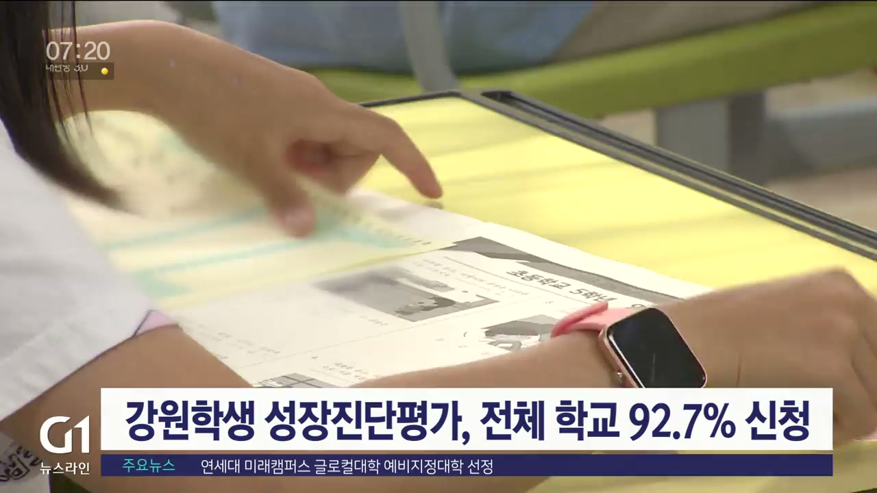 강원자치도교육청은 올해 실시하는 '강원학생성장진단평가'의 학교별 신청을 받은 결과 전체 학교의 92.7%가 신청했다고 밝혔습니다.