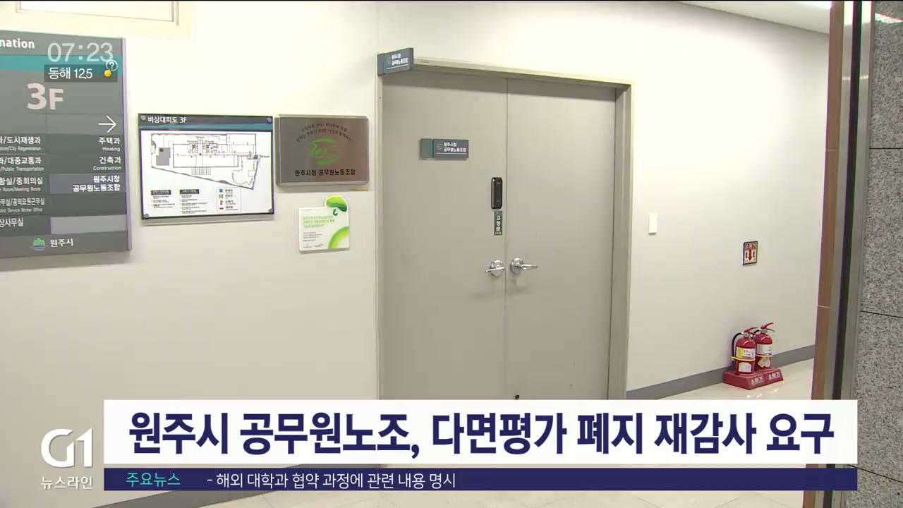 원주시 공무원노동조합이 원주시의 일방적인 다면평가 폐지와 관련해, 강원자치도에 다시 한 번 감사를 요구했습니다.