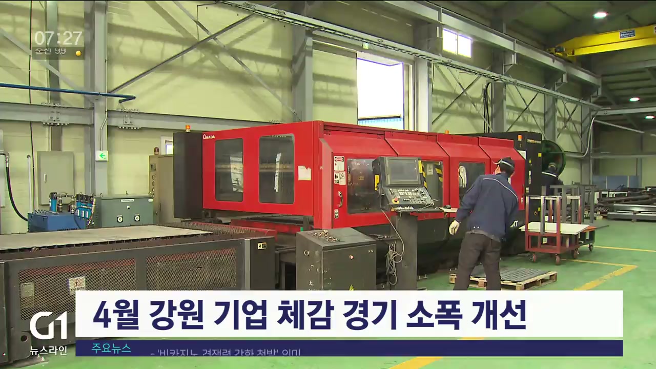 한국은행 강원본부가 발표한 '4월 강원지역 BSI 조사 결과'를 보면, 제조업 현황 BSI는 59로, 58이었던 지난달보다 1포인트 소폭 상승했습니다.