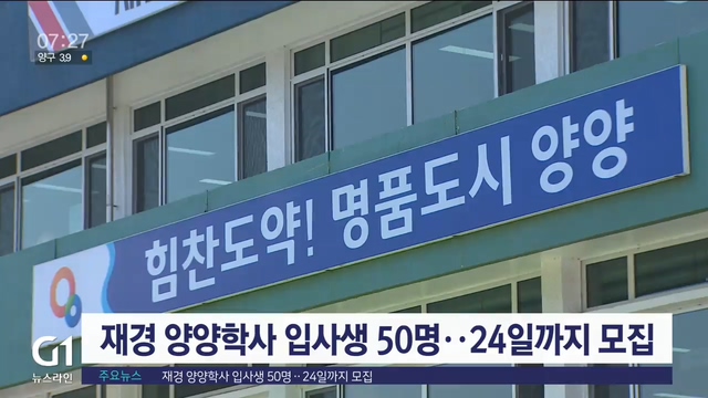 모집 인원은 남·여 각각 25명씩 모두 50명이며, 신청 자격은 2년제 이상 대학이나 대학원생으로 입사생이나 보호자가 양양군에 2년 이상 실거주하면 가능합니다.