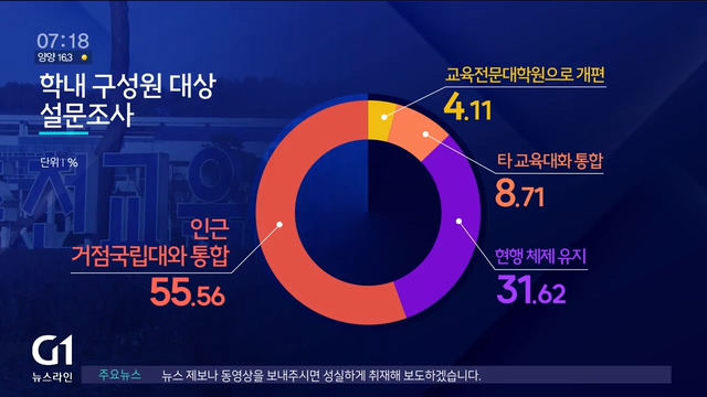 / 학교 구성원들을 상대로 실시한 설문조사 역시 인근 거점 국립대와 통합하자는 의견이 가장 많았습니다. /