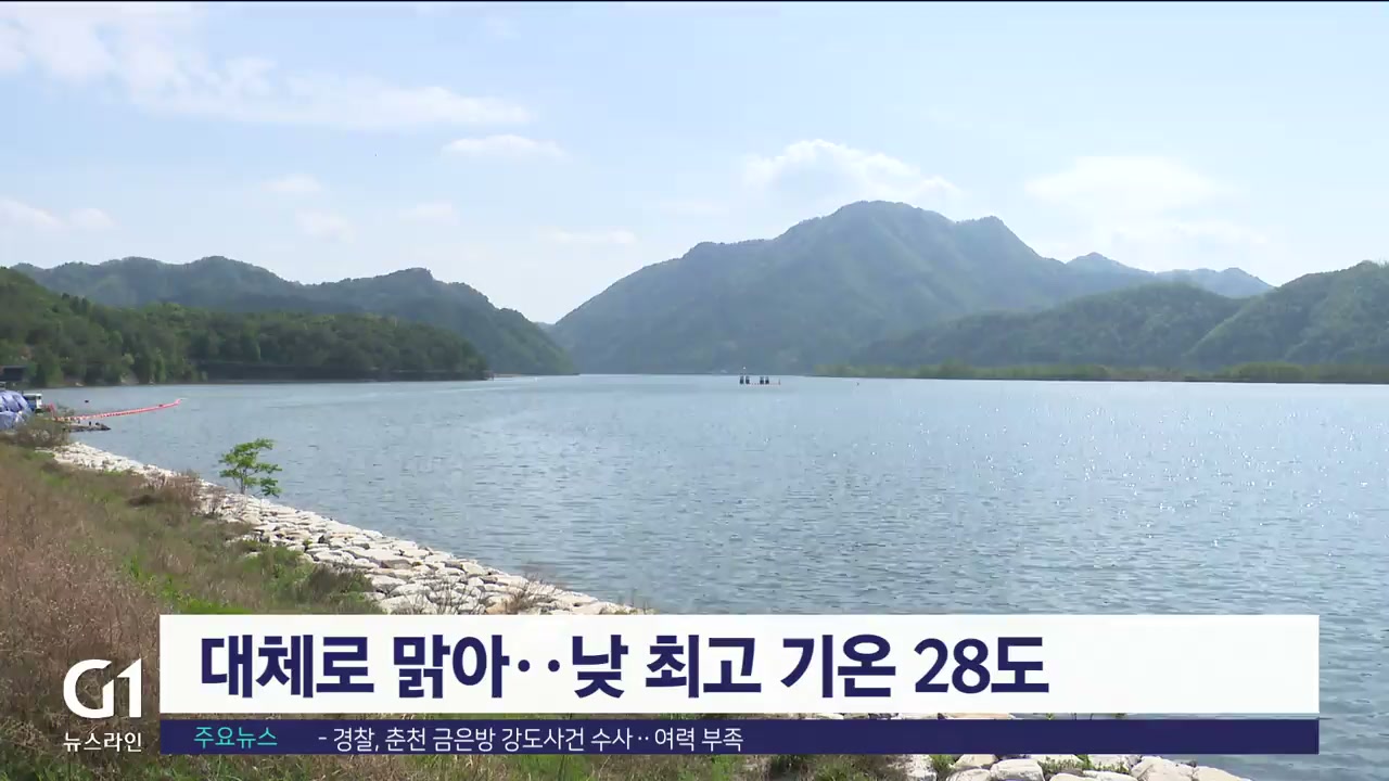 낮 최고 기온은 영서지역이 24도에서 26도, 영동지역은 26도에서 28도의 분포를 보이겠습니다.