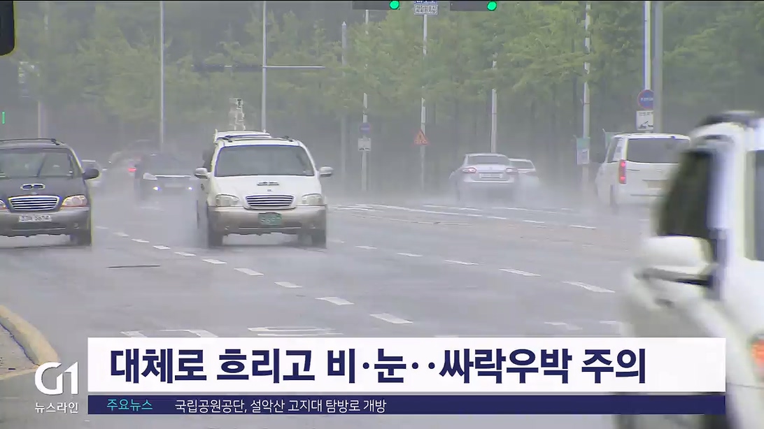 강원지방기상청은 돌풍과 함께 천둥과 번개를 동반한 비와 눈이 오는 곳이 있겠고,