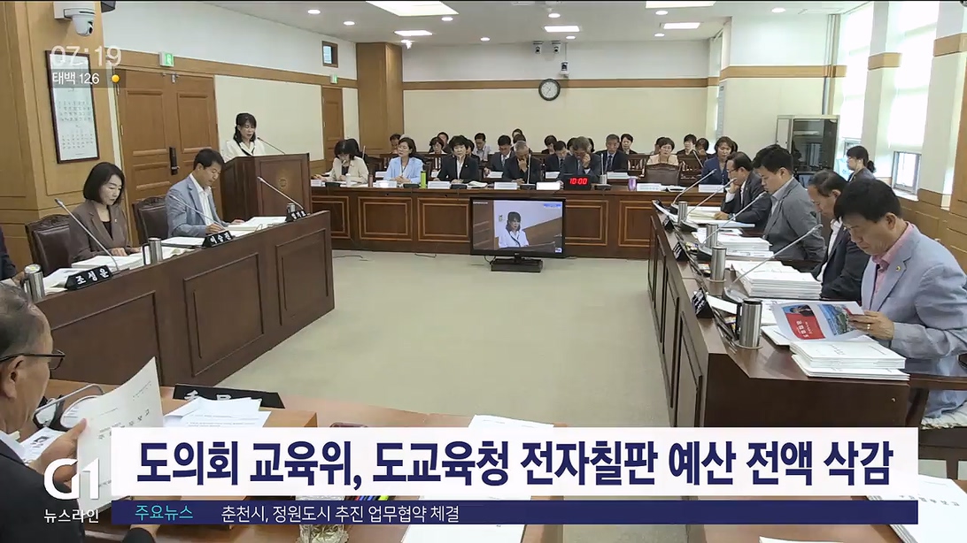 강원자치도의회 교육위원회가 어제(14일) 도교육청 제1회 추경안에 편성된 전자칠판 관련 사업비를 전액 삭감했습니다.