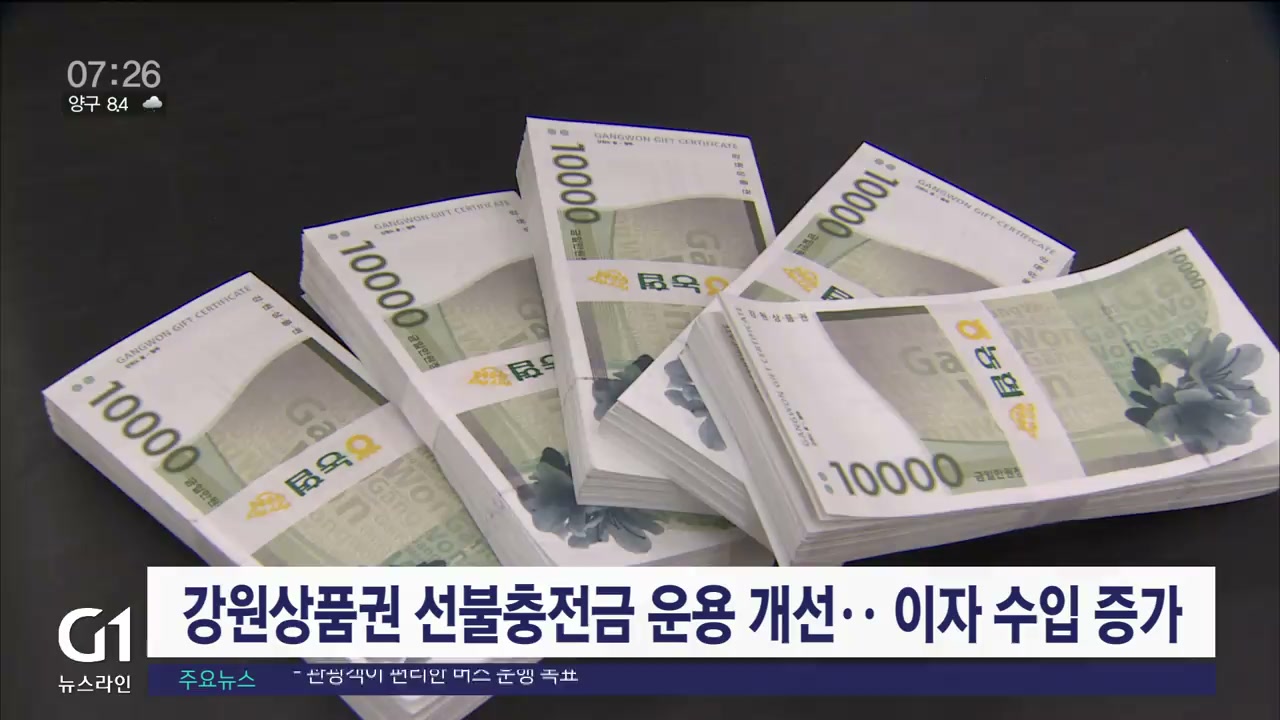 강원상품권 선불충전금 운용 개선.. 이자 수입 증가