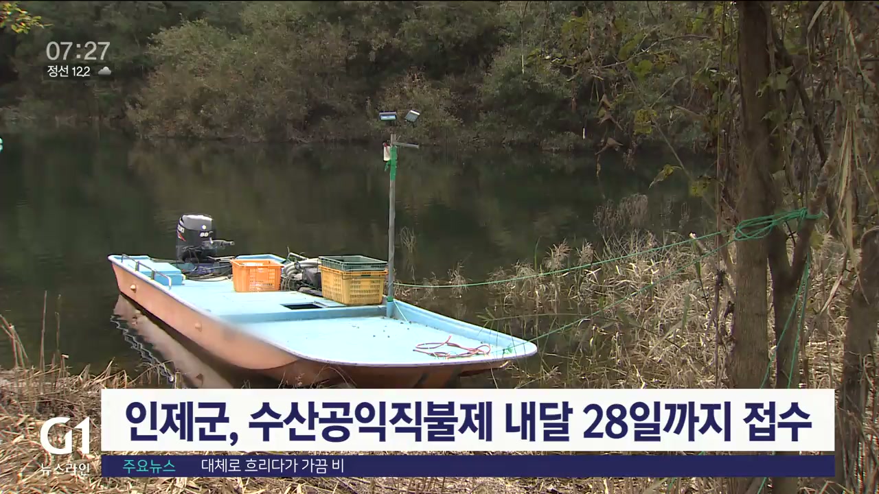 인제군이 다음 달 28일까지 소규모 어가와 어선원을 대상으로 수산공익직불제 신청을 받습니다.