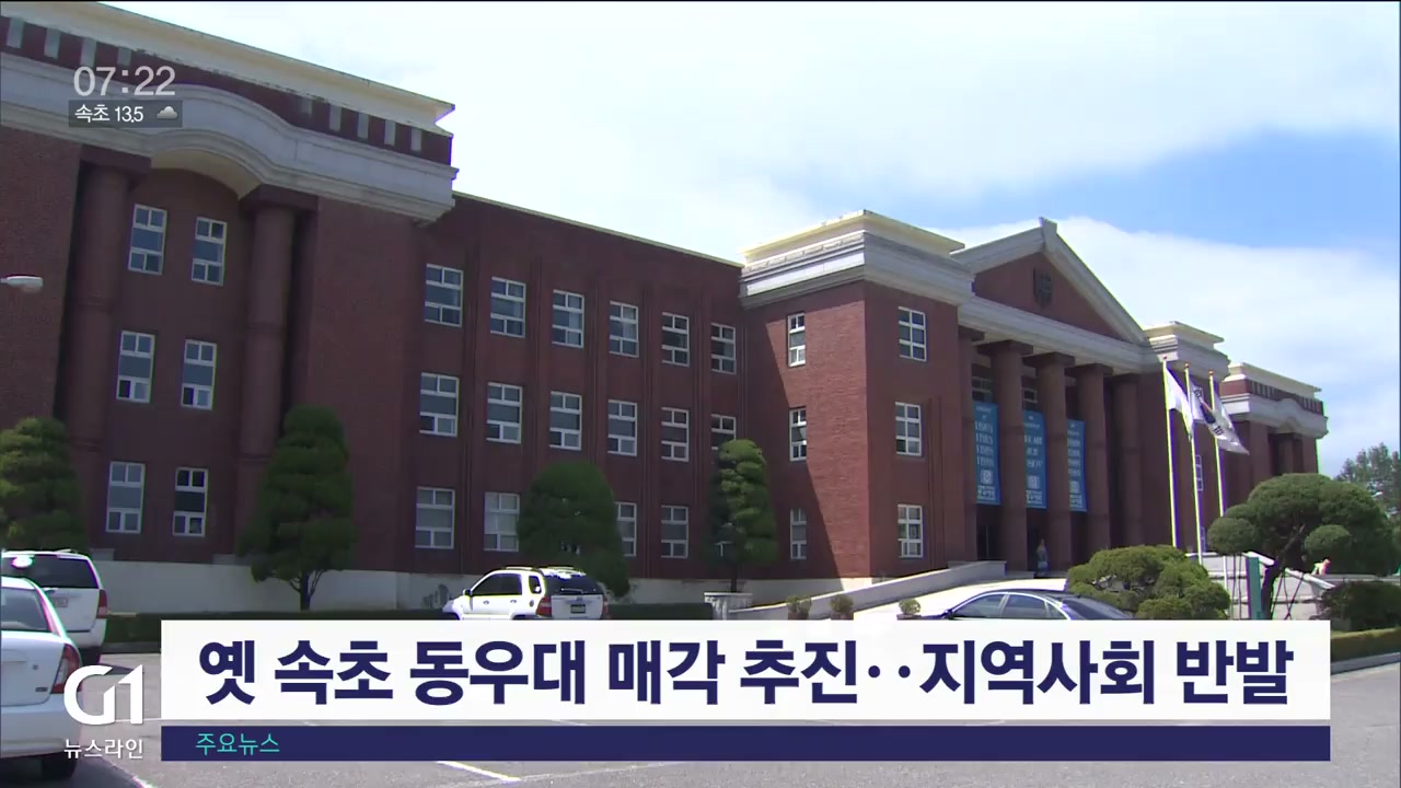 학교법인 경동대가 속초시에 위치한 옛 동우대학 토지와 건물 매각에 나선 가운데, 지역사회의 반발이 거세지고 있습니다.