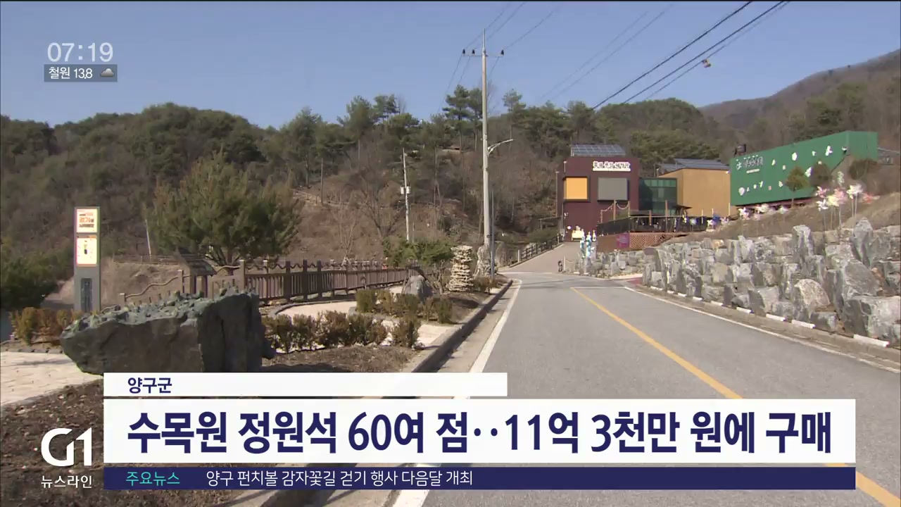 G1뉴스에서는 지난달 양구군이 수목원 정원석을 매입하는 과정에서 특정업체에 특혜를 줬다는 의혹 전해드렸는데요.