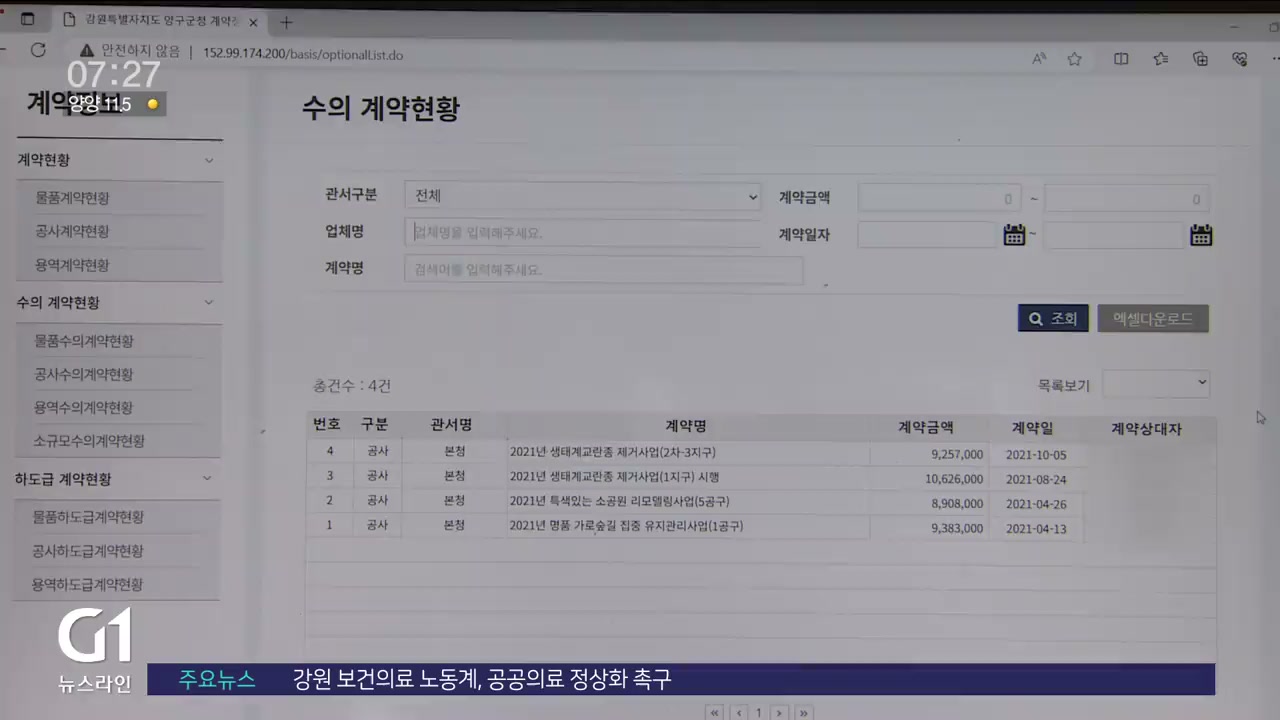 /하지만 양구군 홈페이지에 공개된 수의계약은 단 4건./