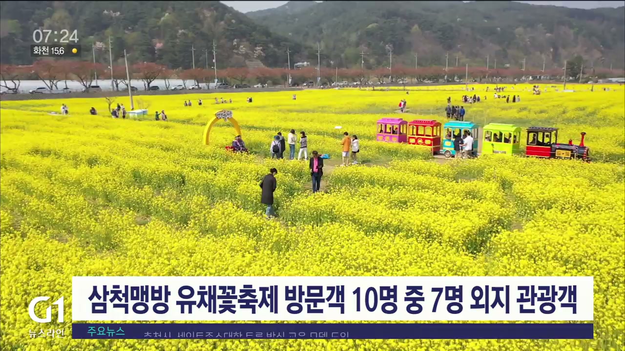 올해 삼척맹방 유채꽃축제장을 찾은 방문객 10명 중 7명은 외지 관광객인 것으로 조사됐습니다.