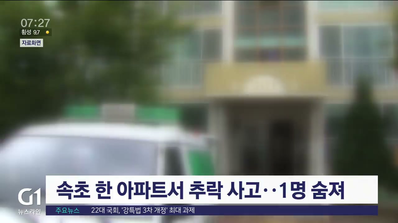 오늘 새벽 4시 10분쯤 속초시 영랑동 한 고층 아파트에서 추락 사고가 발생했습니다,