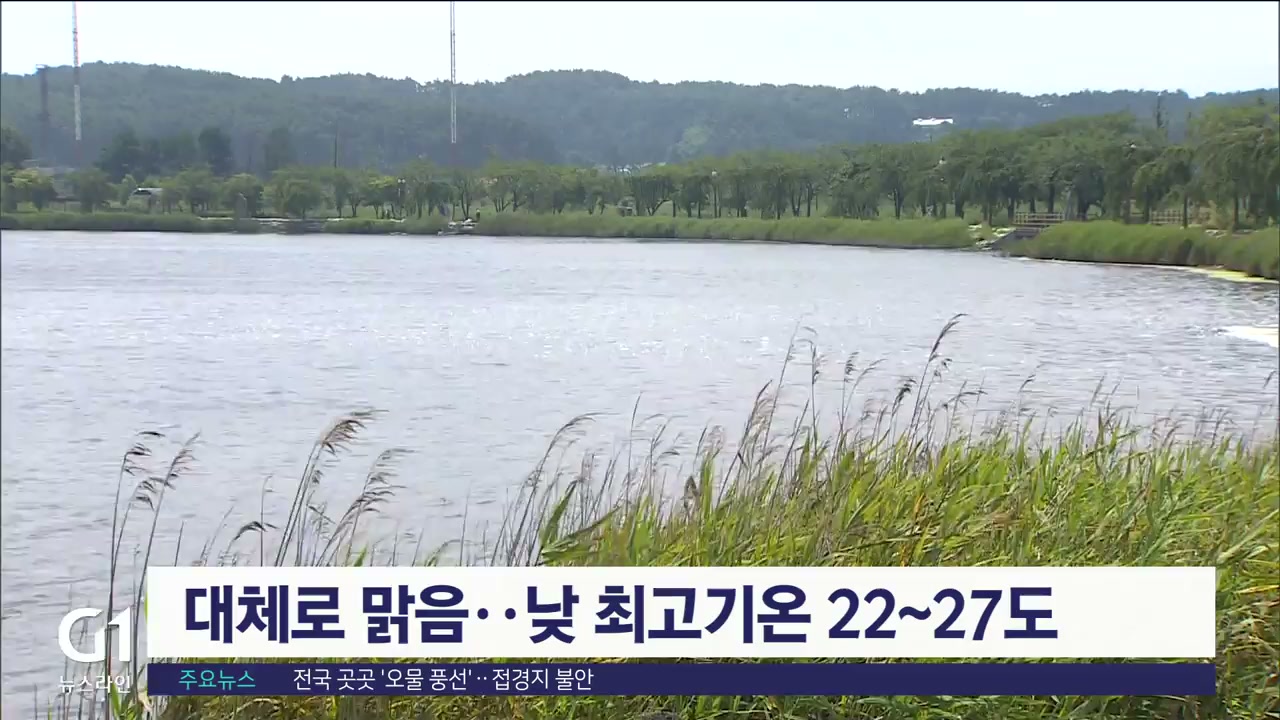 낮 최고기온은 영서지역이 24도에서 27도, 영동지역은 22도에서 25도의 분포를 보이겠습니다.