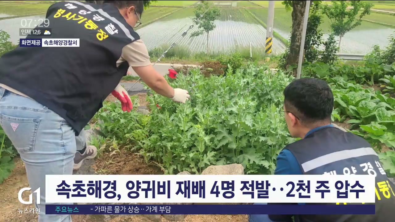 속초해경, 양귀비 재배 4명 적발..2천 주 압수