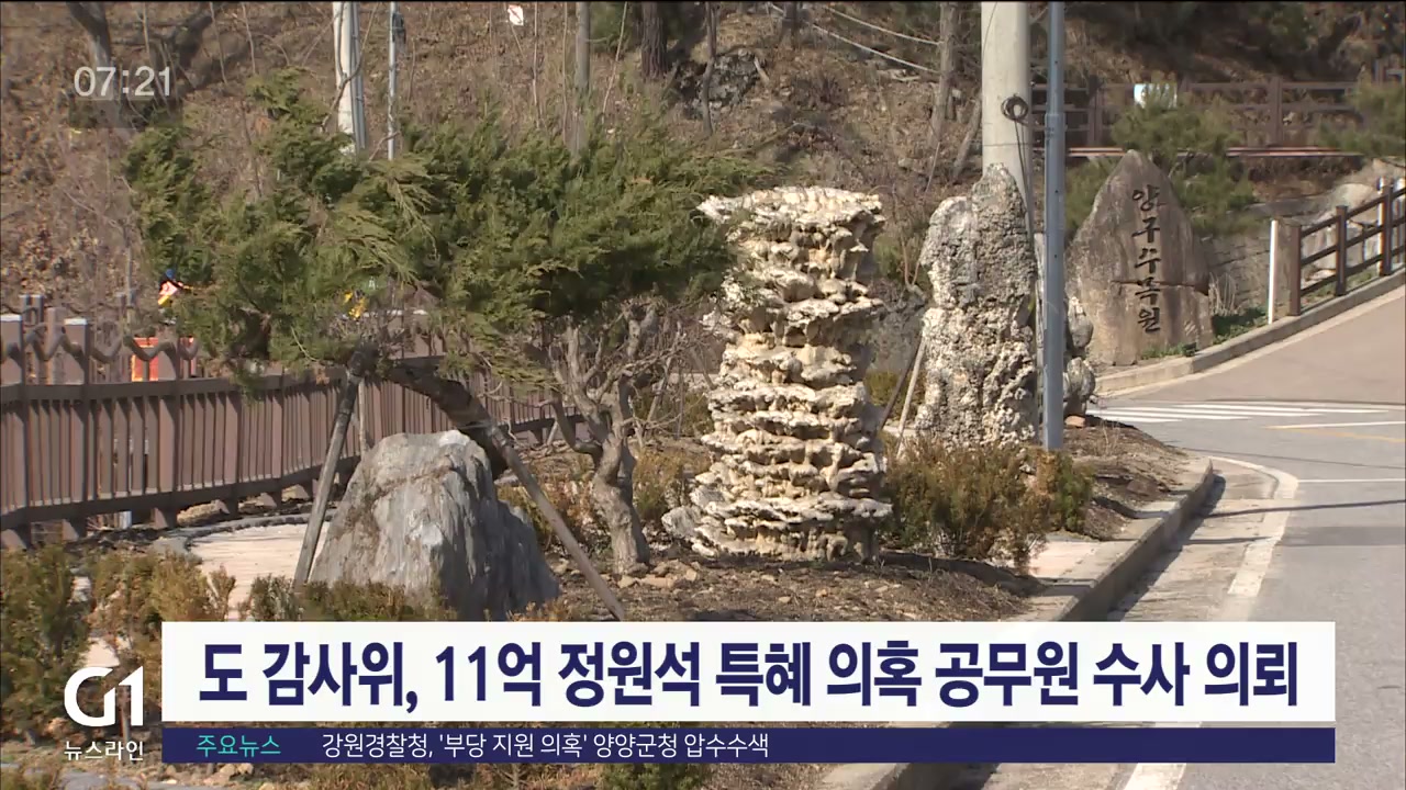 G1뉴스가 보도한 양구수목원 정원석 매입 특혜 의혹과 관련해 경찰이 양구군 간부 공무원에 대한 수사에 착수했습니다.