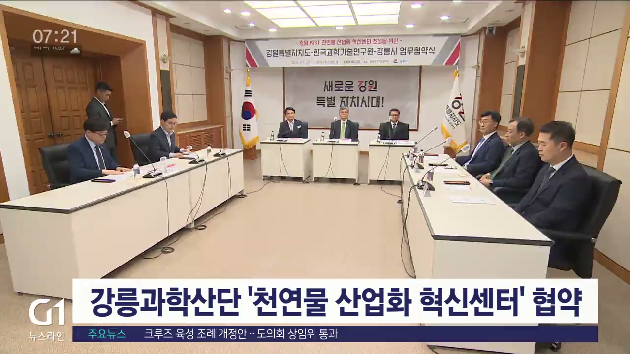 강원자치도와 강릉시, 한국과학기술연구원은 도청에서 업무 협약을 체결하고, 280억 원이 투입되는 '천연물 산업화 혁신센터' 조성에 협력하기로 했습니다.