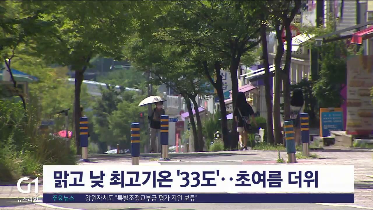 낮 최고기온은 영서권과 영동권 모두 30도에서 33도의 분포를 보이겠습니다.