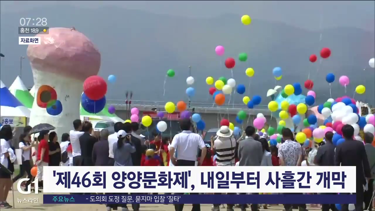 양양군민의 대화합 향토문화축제인 '제46회 양양문화제'가 내일(20일)부터 사흘간 양양 남대천 수변공원 일대에서 펼쳐집니다.