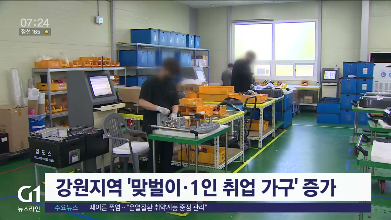 지난해 하반기 강원지역 맞벌이 가구와 1인 취업 가구가 전년보다 각각 6천 가구씩 늘었습니다.