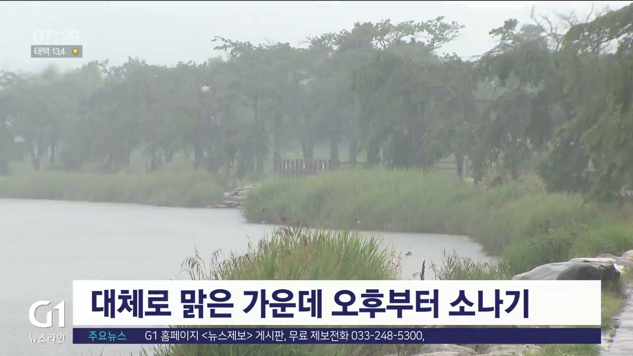오늘(21) 강원자치도는 대체로 맑은 가운데 오후부터 내륙과 산지 지역을 중심으로 소나기가 내리는 곳이 있겠습니다.