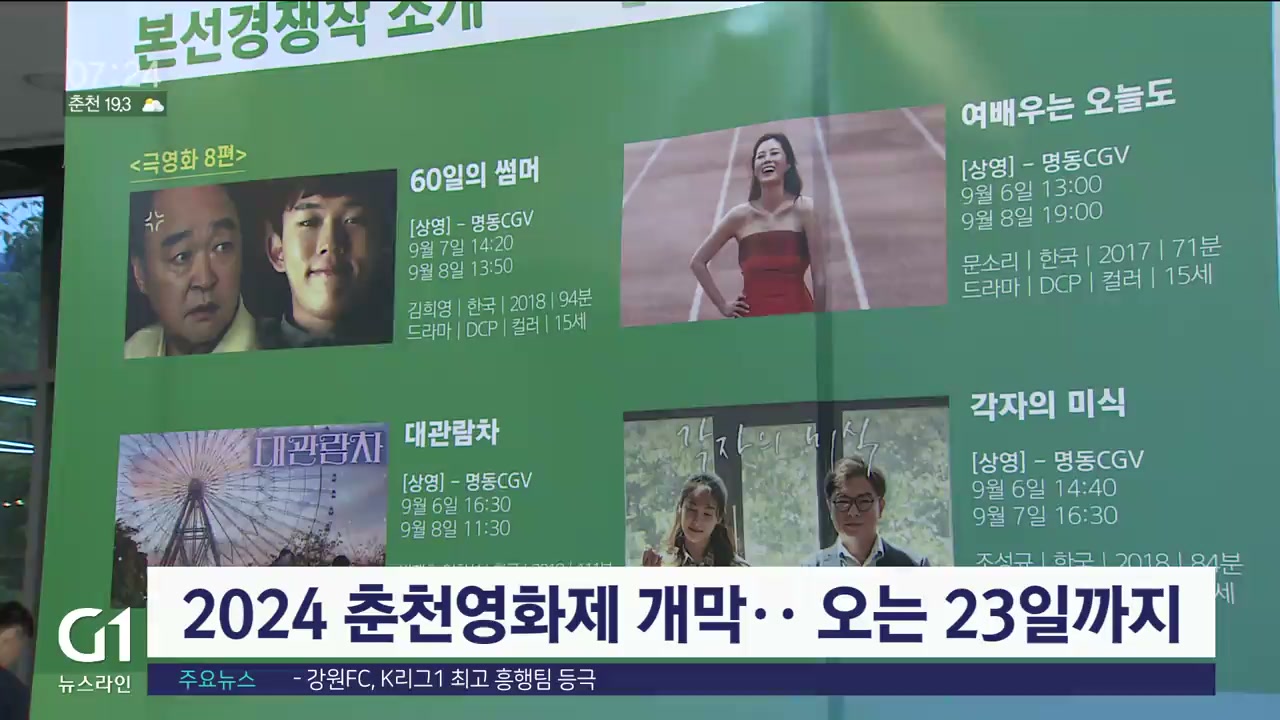 올해 개막작으로는 장권호 감독의 '빛과 몸'이 선정됐으며, 오는 23일까지 메가박스 남춘천을 비롯한 춘천 일대에서 장편 22편과 단편 30편을 상영합니다.