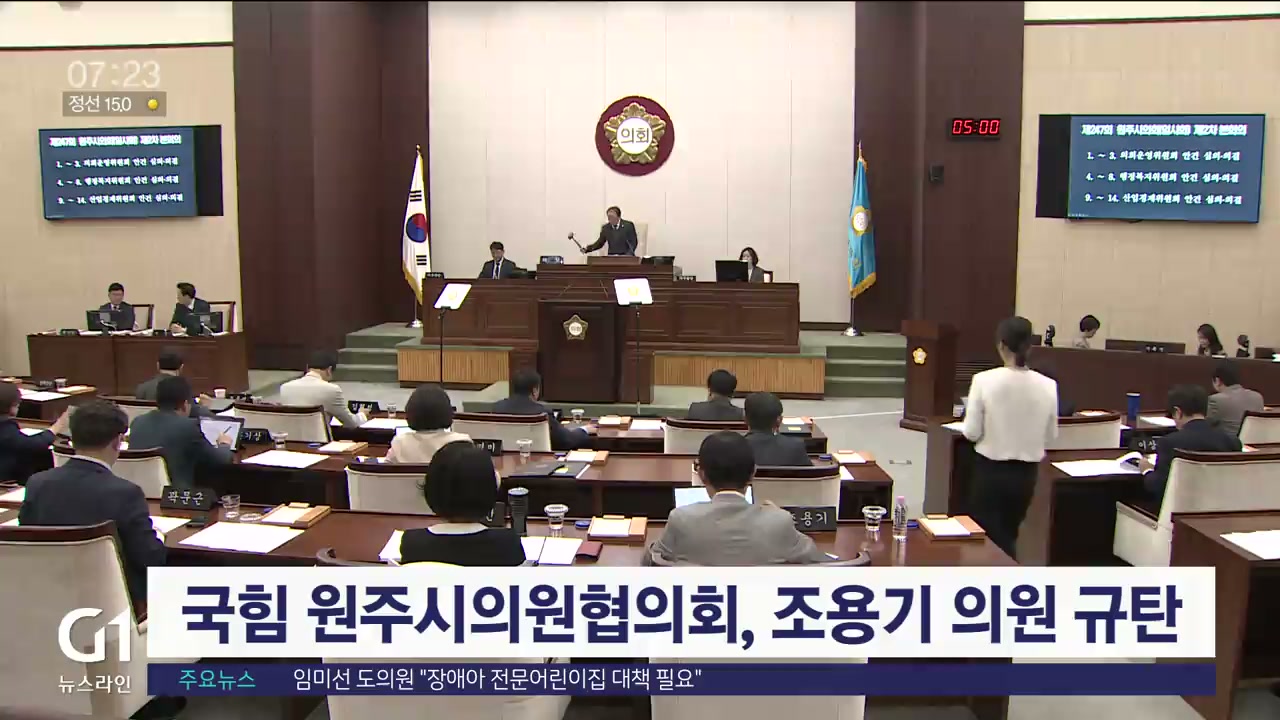 국민의힘 원주시의원협의회가 시의장 선거에 후보 등록한 조용기 의원이 해당행위를 했다며 강력 규탄했습니다.