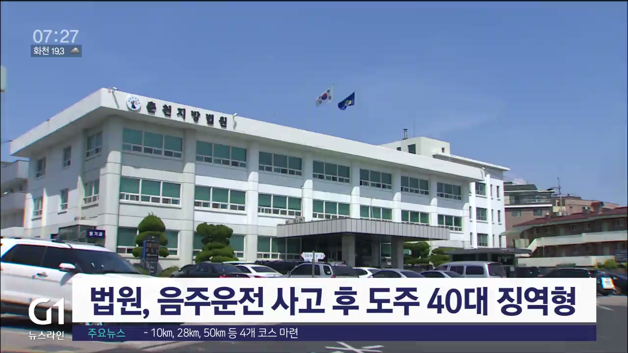 춘천지법 형사2부는 도로교통법 상 음주측정 거부와 사고 후 미조치 혐의로 기소된 45살 A씨에게 원심과 같은 징역 1년에 집행유예 2년을 선고했습니다.