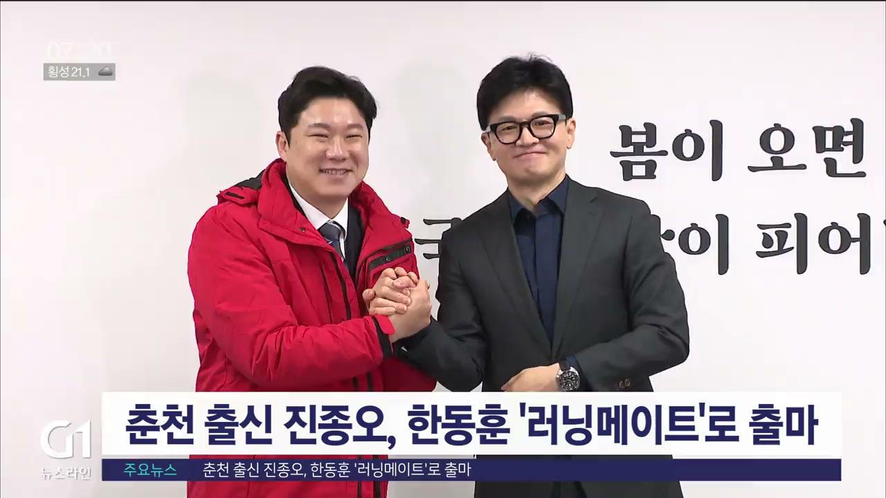 춘천 출신 국민의힘 비례대표인 진종오 의원이 다음달 23일 치러지는 당대표 경선에 한동훈 전 비상대책위원장의 러닝메이트로 청년최고위원 선거에 출마합니다.