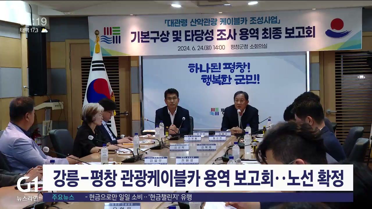 강릉시와 평창군이 추진 중인 관광케이블카 조성 사업의 조사 용역 최종보고회가 어제(24일) 평창군청에서 열렸습니다.
