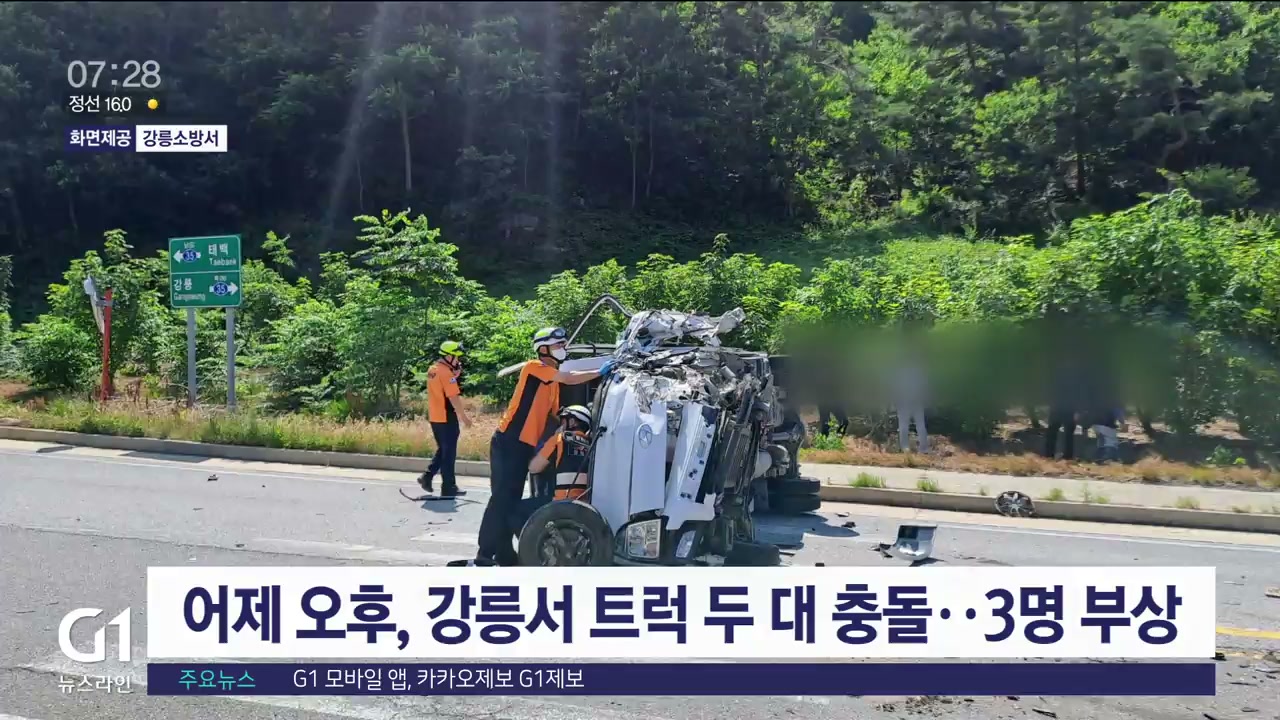 어제 오후, 강릉서 트럭 두 대 충돌..3명 부상