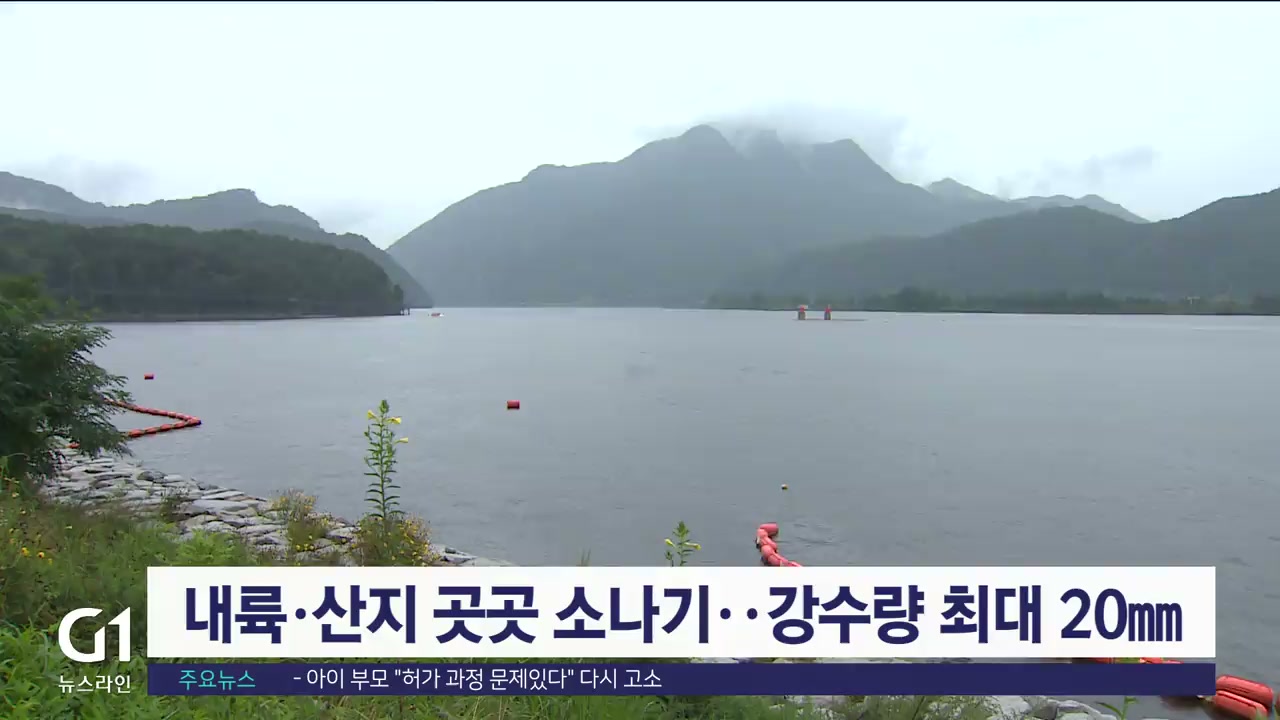 내륙·산지 곳곳 소나기..강수량 최대 20mm