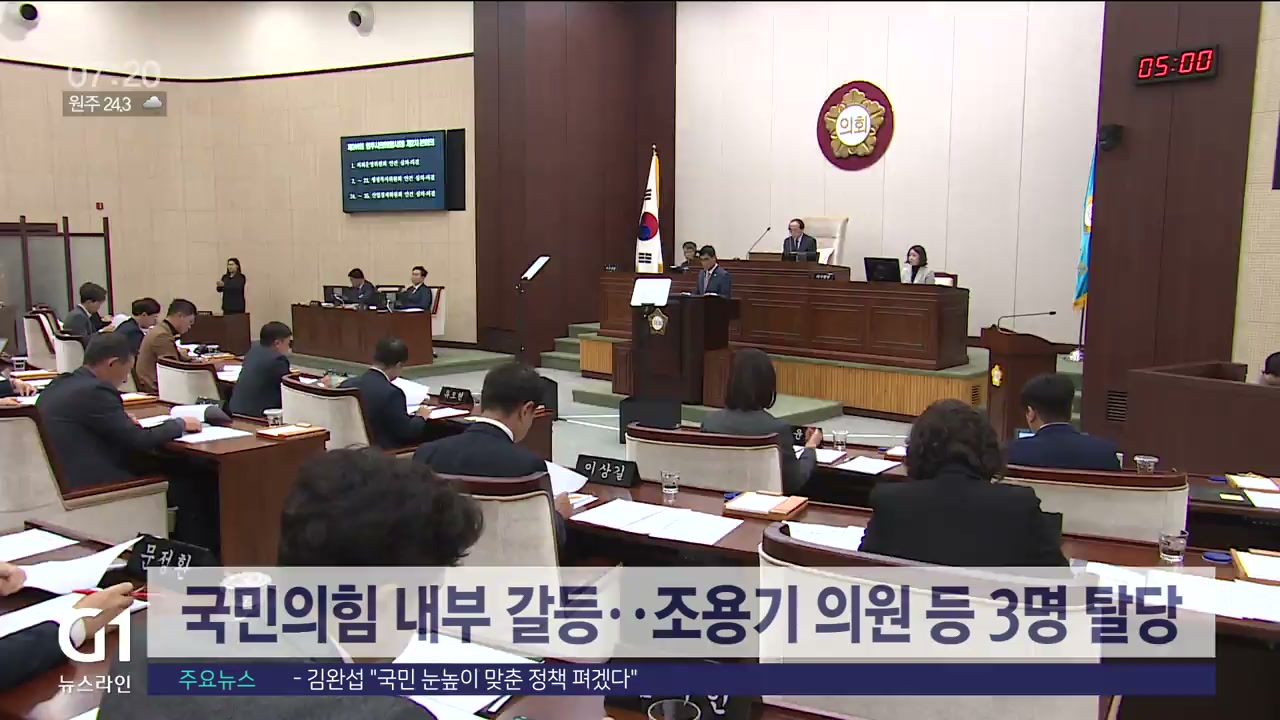 원주시의회와 횡성군의회는 의장단을 구성한 뒤에도 탈당에 삭발 기자 회견까지 이어지며,
