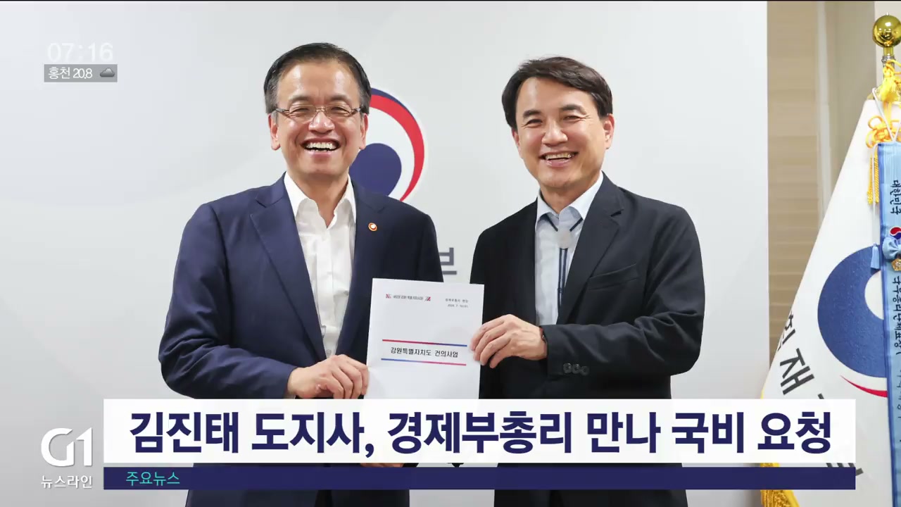 김진태 지사가 요청한 국비 지원 사업은 제2경춘국도 건설, 영월~삼척 고속도로 건설, 반도체 소재·부품 생산거점 구축 등입니다.