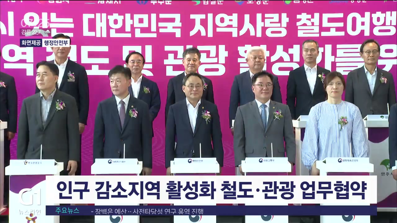 국토부와 행안부, 철도공사와 관광공사 등 정부 기관과 인구 감소세가 심각한 전국 지자체 23곳은 어제(16일) 철도 관광 활성화를 위한 업무협약을 체결했습니다.