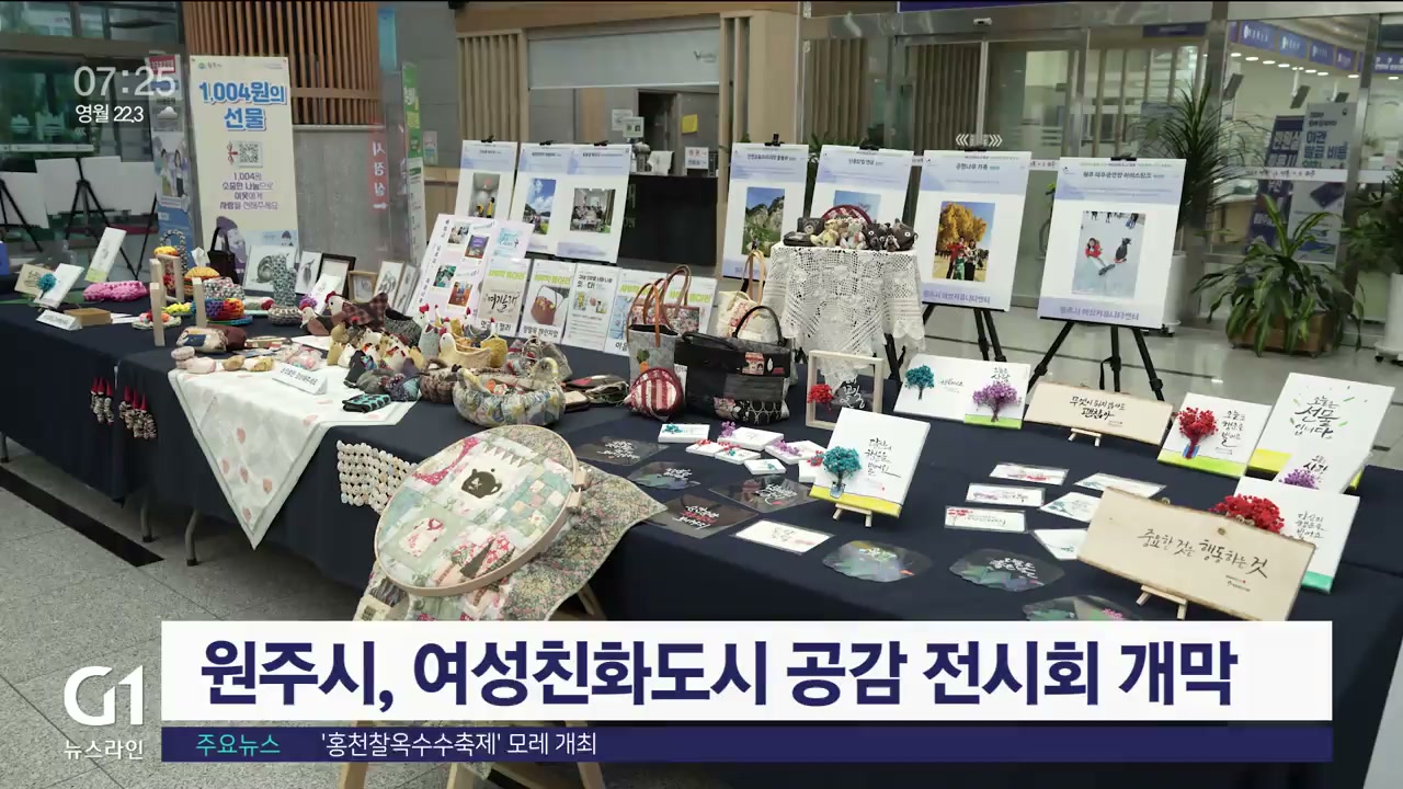 원주시가 주최한 '제1회 시민과 함께 만드는 여성친화도시 원주를 담다' 공감 전시회가 어제 (16일) 시청 1층 로비에서 개막해 내일(18일)까지 사흘간 열립니다.