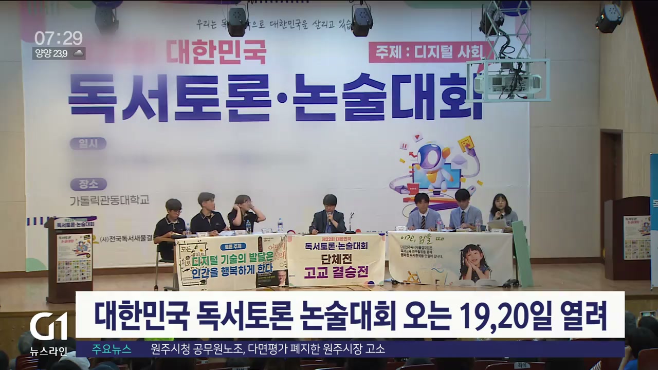 '제23회 대한민국 독서토론·논술대회'가 내일(19일)부터 이틀간 강릉에서 열립니다.