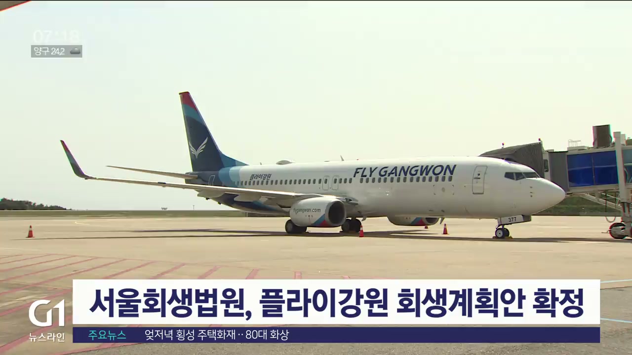 양양국제공항을 모기지로 둔 플라이강원의 회생 계획을 인가하고 기업 회생 절차를 최종 마무리한 겁니다.